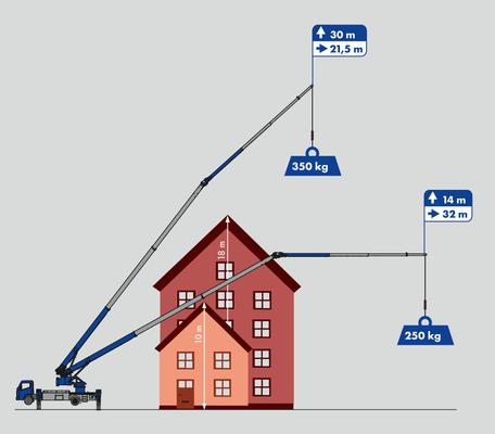 - Höchste Reichweiten bis auf die Dachrückseite für effektives Arbeiten ohne Umsetzen des Krans