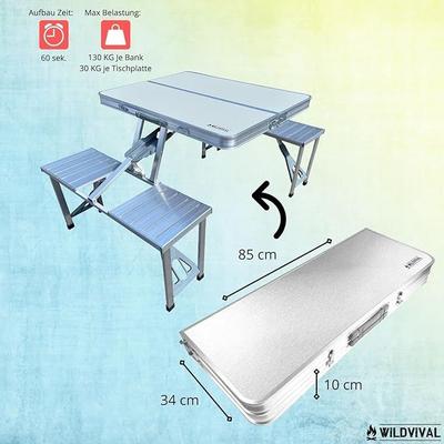 Campingtisch Alu Alutisch im Koffer Bierzeltgarnitur Alusitzgarnitur Tisch mit 4 integrierten Sitzplätzen – ideal auf Reisen Camping Garten