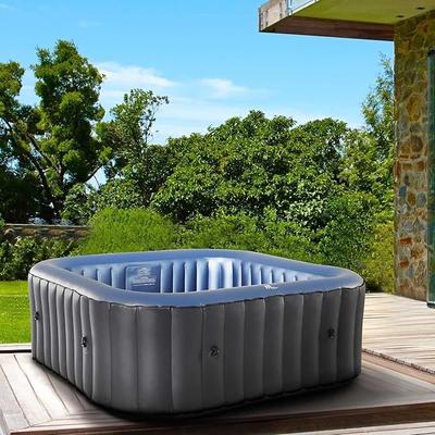 Whirlpool Spa aufblasbar für 6 Personen Spa 185 x 185 cm In-Outdoor Pool 132 Massagedüsen Timer Heizung bis 40°C Aufblasfunktion per Druckknopf TÜV geprüft Sprudelbad Wellness Massage