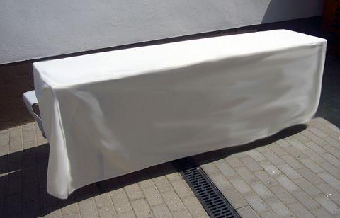 Details: bügelfrei Polyjersey cremefarben komplett für 1 Tisch 50 cm breit Länge 2,20m inkl. Moltonunterlage (Diese Auflage dient als Schutz vor Beschädigungen der Hussen. Die Tischwäsche bekommt ein volleres Aussehen. Das Absetzen des Geschirrs, der Bestecke und der Gläser erfolgt dadurch geräuscharm. Preis ohne Molton € 2 weniger) inkl. 1malig Waschen