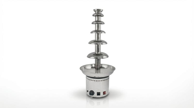 Der Profi-Schokobrunnen aus hochwertigem Edelstahl bietet eine Kapazität von bis zu 6 kg Schokolade. Die Temperatur ist präzise regelbar (30 °C bis 150 °C) und sorgt durch extra glatte Kaskaden für ein gleichmäßiges, fließendes Schokoladen-Erlebnis. Das Gerät entspricht höchsten Hygiene- und Sicherheitsstandards.