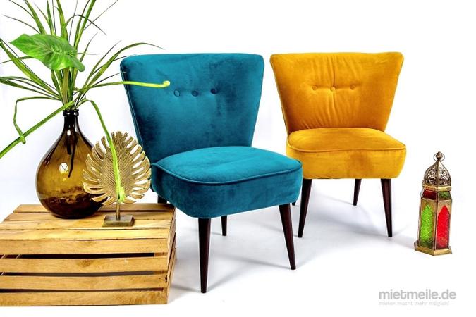 Wir vermieten unsere Cocktail Sessel in verschiedenen Samtbezügen Fragen Sie gerne unverbindlich an, wir freuen uns auf Ihre Anfrage!