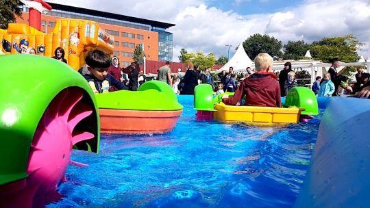 Mit unserem Powerpaddler Komplettpaket kannst Du genau das auf Deinem nächsten Event anbieten. Deine Gäste können sich völlig ungefährlich auf Seefahrt begeben. Durch die geringe Wassertiefe von 20-40cm, geht in unseren Pools keinerlei Gefahr für die kleinen und großen Seefahrer aus. Unsere Paddelboote haben in der Kinder-Variante eine Tragkraft von 50kg und in der Erwachsenen-Variante eine Tragkraft von 85kg. Da nicht jede Veranstaltung gleich ist und nicht überall eine Wasserfläche vorhanden ist, bieten wir Dir, zu unseren POWER-PADDLERn, aufblasbare Pools in verschiedenen Größen an (natürlich zum einheitlichen Preis). Zudem kannst Du auch weitere Boote für Kinder und Erwachsene buchen werden (Aufpreis). Die Grundausstattung besteht aus einem aufblasbaren Pool (10 x 6m bzw. 12 x 8m) und 4 Power-Paddlern, sowie allem nötigen Zubehör. Natürlich können alle Komponenten einzeln bei uns gebucht werden und Du kannst die Boote beispielsweise in einem Freibad, auf dem Badesee oder Deinem eigenen Pool einsetzen. Zur Betreuung unserer POWER-PADDLER empfehlen wir Dir stets unsere Animateure. Dazu bieten wir Dir unser "Tagesaktion Komplettpaket mit Personal" an, in dem bereits 2x Personal für 6 Aktionsstunden, sowie der Auf- und Abbau enthalten ist.