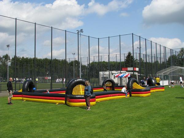 Bei diesem Modul haben wir die Sportarten Fußball und Billard miteinander verbunden! Die Teilnehmer spielen wie beim Billard entweder ein Einzel oder Doppel. Das Spielfeld ist etwa 8 x 5 Meter groß und hat anstelle von zwei Toren insgesamt sechs Lochtaschen wie beim Billard.