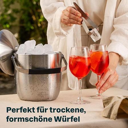 Eiswürfelbehälter Eiskübel mit Deckel und Zange Edelstahl doppelwandig isoliert extra Kühlung durch Kühlmanschette 3 Liter