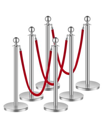 Absperrpfosten silbern Absperrung Personenleitsystem 6 Stk. Steuerung Personenführung 3 rote Seile
